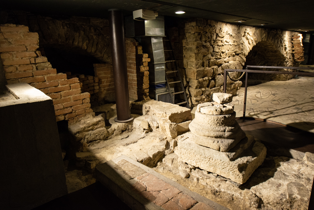 This is the basement. It seems to be common practice in Italy to just build over something when you want an update. Many tour guides referred to Rome as a lasagne. They more you dig the more history you find. The crypts are no exception. These mosaics are the old floor of the church.
